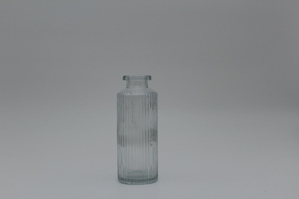 Die Blumenvase ist transparent in einem schlichten Streifen Design.