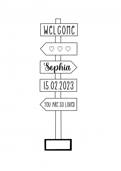 Personalisierter Wegweiser, individuell nach Wunsch beschriftet. Der Wegweiser kann nur mit 5 Schilder bestellt werden. Schriftarten wie auf dem Bild ersichtlich.